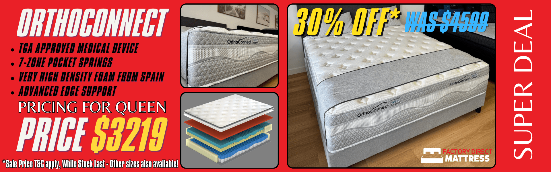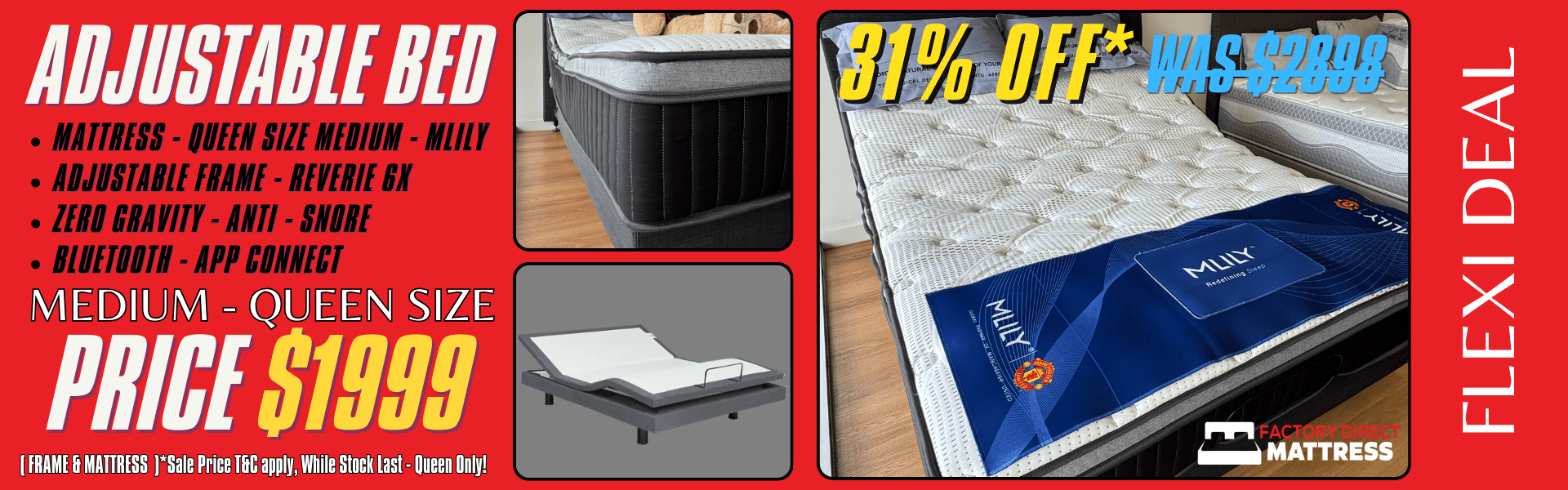Check out our monthly specials on mattresses and adjustable beds. Whether you’re upgrading your main bedroom or fitting out a guest room, our factory-direct prices and limited-time offers make it easy to save while still investing in comfort, durability, and better sleep quality.